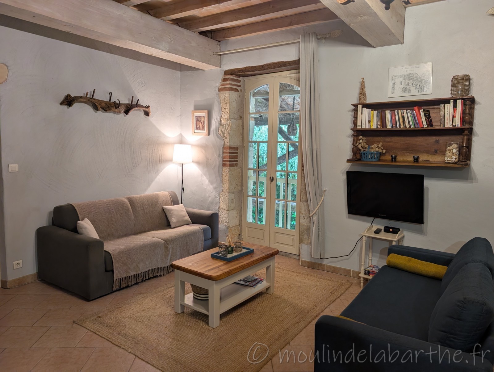 Découvrez au premiere étage du moulin ce gite avec une cuisine équipé , une grande salle a manger avec 2 canapés, dont un convertible en 2 couchages. Le gite est pourvus de 2 chambres , une avec un lit double (160cm) l'autre avec 2 lit simple jumelés (2x90). la salle de bain est tres spacieuse et possede une baignoire d'angle. Les toilettes sont séparées.